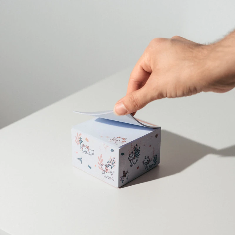 Este bloc de notas adhesivas pertenece a la colección Bonjour Marie de Los Aristogaros y es la mejor solución para anotar todas tus ideas y que no se te olvide nada. Cuenta con un total de 400 hojas adhesivas removibles de 90g/m2 con un tamaño de 75 por 75 milímetros.