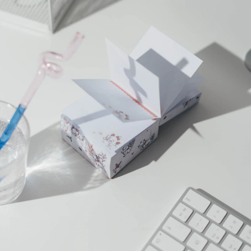 - Las hojas tienen un tamaño de 75 x 75 mm.