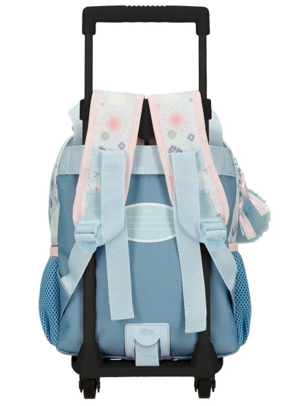 Incorpora un carro con ruedas de silicona y sistema Magic Fix para conseguir una mayor sujeción de la mochila al carro.