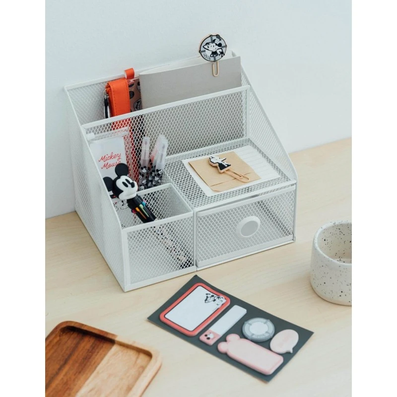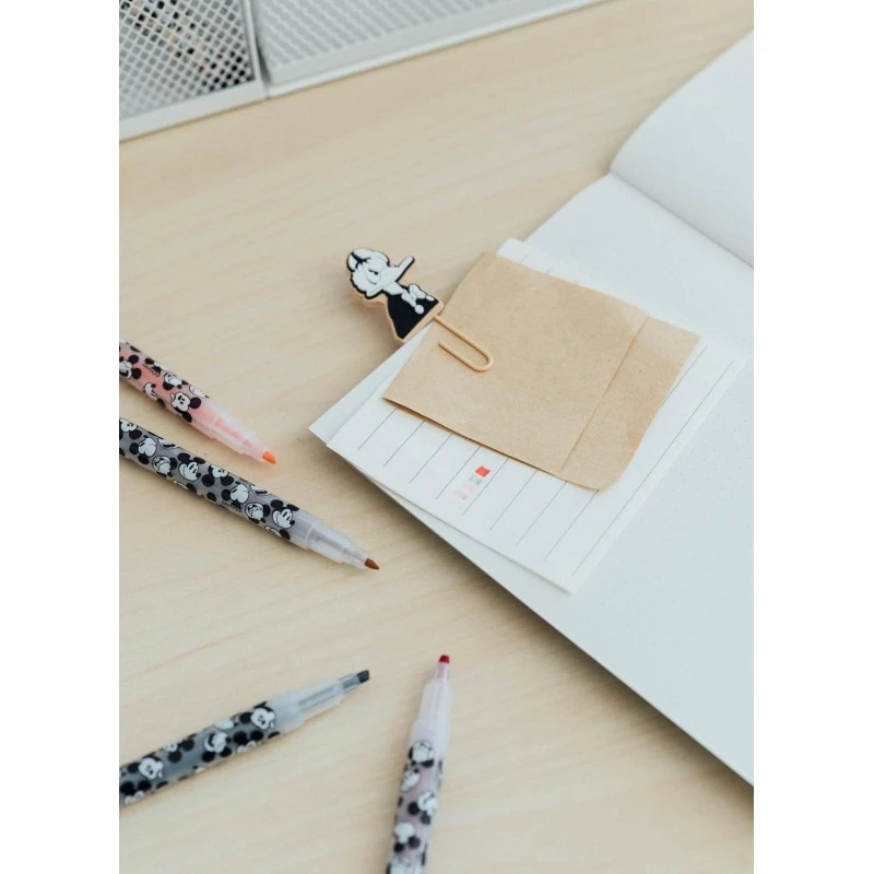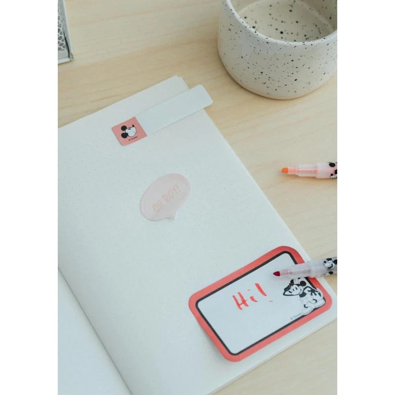 ¡Prepárate para la vuelta al cole o al trabajo con este kit de papelería de Mickey Mouse! Contiene un bolígrafo de 10 colores con topper en 3D, 4 subrayadores en tonos pastel dentro de una funda de PVC, 2 clips con topper, notas adhesivas de diferentes tipos y un estuche con cremallera fabricado en PU y PVC.
