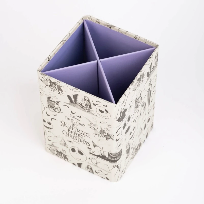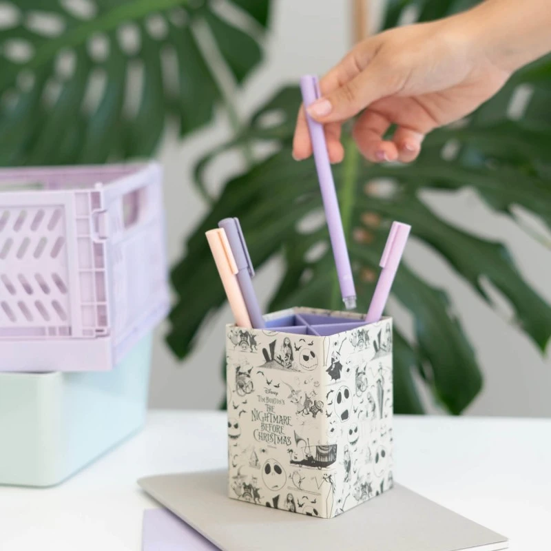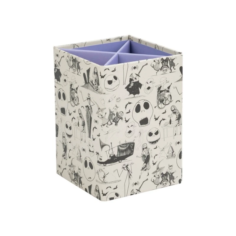 Este lapicero de Pesadilla Antes de Navidad es el elemento ideal para colocar en tu escritorio o en tu lugar de estudio o trabajo. Cuenta con diferentes compartimentos que permiten tener todos tus lápices y bolígrafos bien organizados. Tiene un tamaño de 10 cm de altura y 8 cm de ancho aproximadamente.