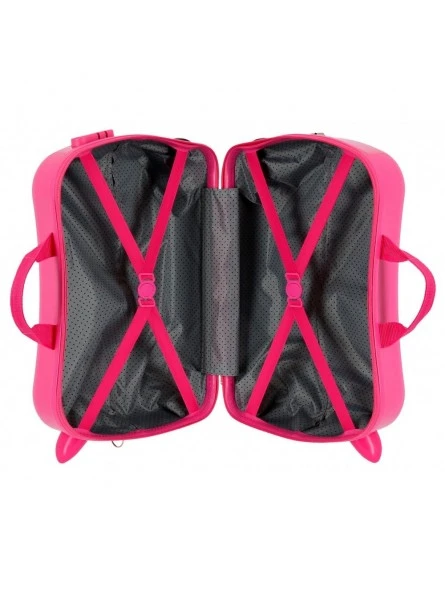 Maleta infantil correpasillos Disney Love Minnie All Heart de 38x50x20 cm. Tiene una capacidad de 34 litros y pesa 2,1 kg. Fabricada en ABS, un material muy resistente, rígido y ligero.