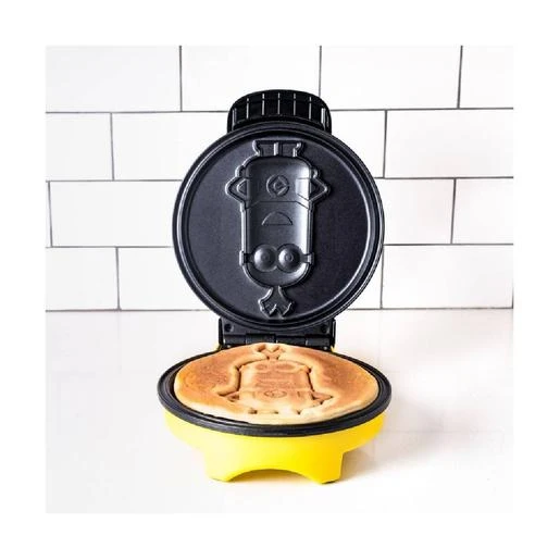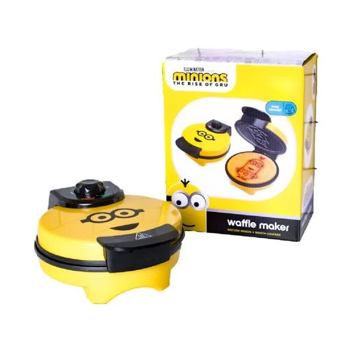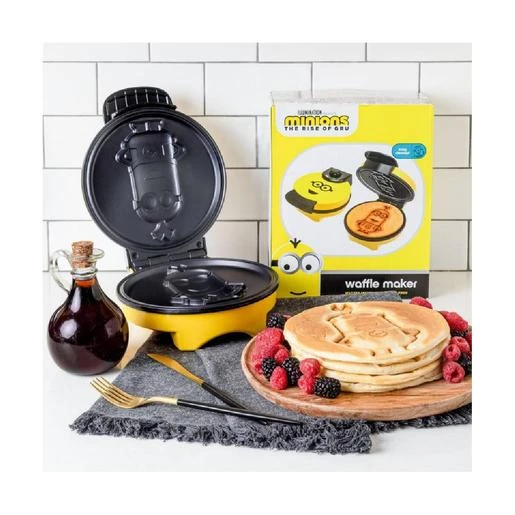 Máquina para hacer gofres con diseño de Los Minions, inspirada en la famosa serie de películas, con una superficie antiadherente que se limpia con facilidad e impresión de un Minion en el gofre.